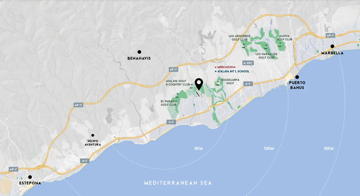 Naya Residences is located in the El Paraiso/ Atalaya district, at the heart of the Golden Triangle – the that runs from Marbella in the east to Estepona in the west and northwards to La Zagaletta, the location of some of Spain’s most luxurious properties.